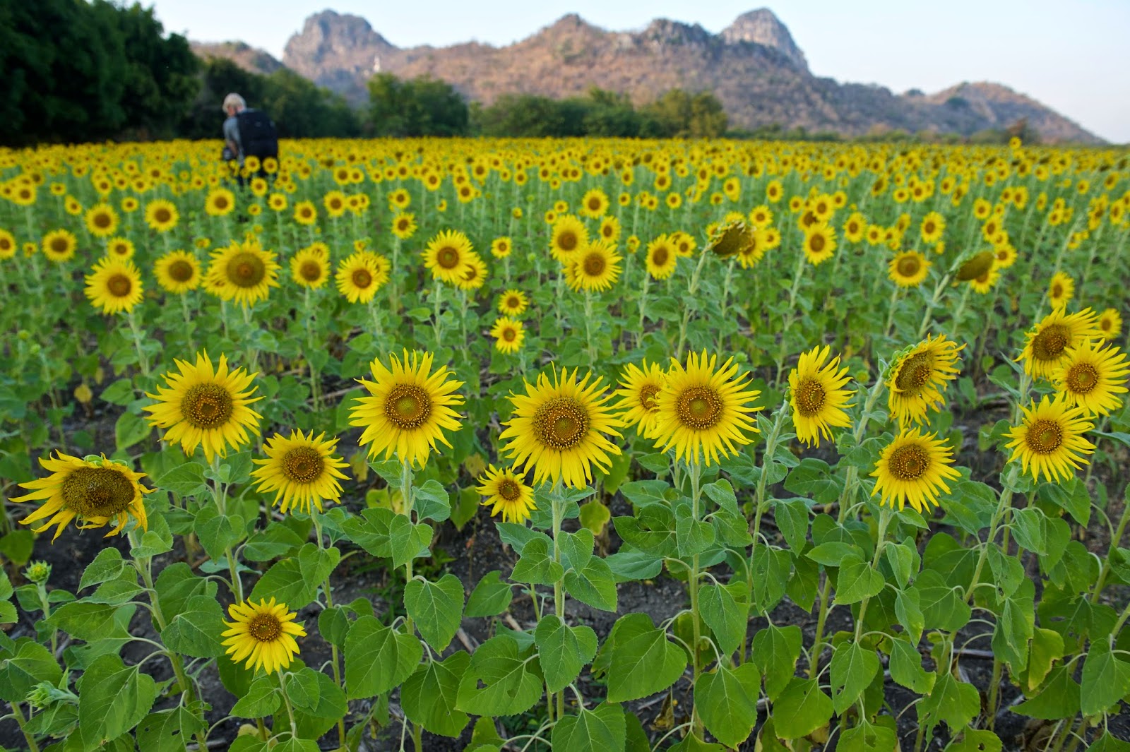 Someone just said that he can’t remember Lopburi looking like this. What he recalls is a small dusty town with white chalk dust everywhere. But this is what I saw outside the Lopburi town, a vast field full of these bright yellow flowers in full bloom. The field seems to stretch as far as the mountains which serves as its backdrop. This sight gave me a wonderful feeling. It’s beautiful and it reminded me of God’s artistic nature.